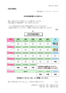 ジャパン【12月】休業のご案内